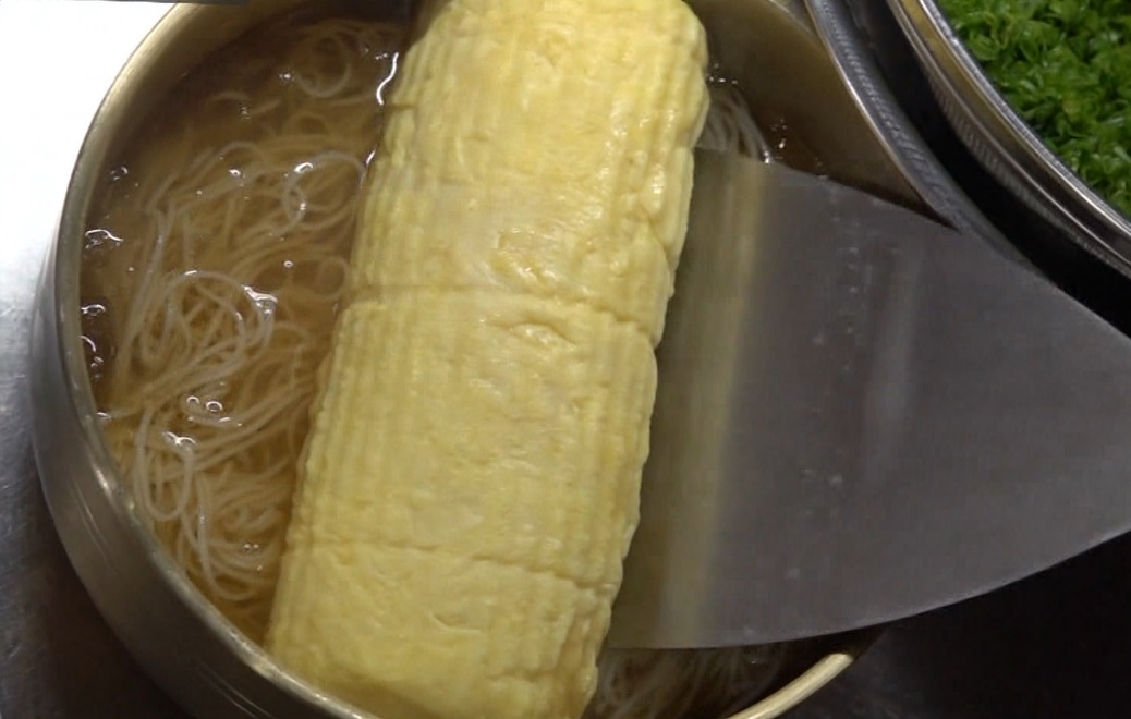 압도적인 존재감으로 시선은 물론 입맛까지 사로잡은 달걀말이는 따끈한 상태로 국수 위에 올려 국수의 온도를 맞춰주는 역할을 하는데요. 부드럽게 씹히며 맛의 인상을 좌우하는 키플레이어이기도 합니다.