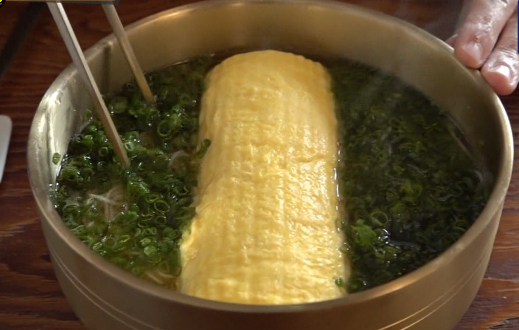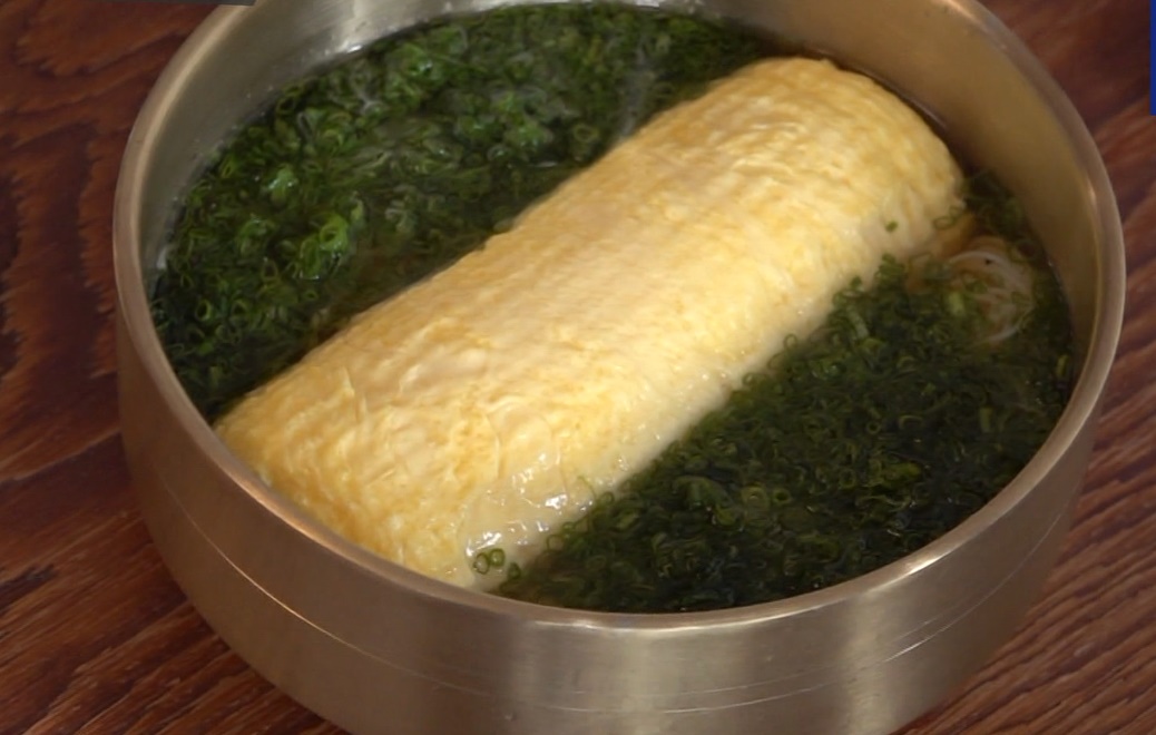 대미를 장식할 달걀말이는 주문 들어오는 즉시 만드는데. 두툼한 두께 덕에 많은 양이 필요하고 한 번에 마는 노련한 스킬도 필요합니다.