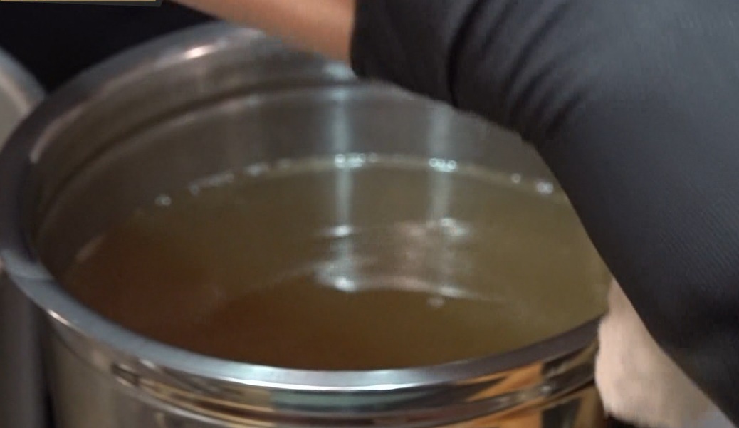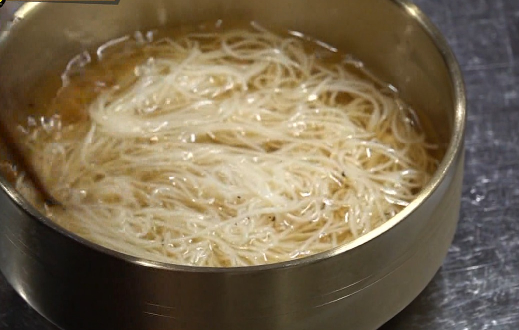 국수에 들어가는 육수도 세 가지 육수를 배합해서 사용하고 있다는데요. 한 번도 공개한 적 없는 베일에 있던 육수를 공개하겠다는 달인. 먼저 가다랑어포 육수를 연하게 뽑아넣은 것,