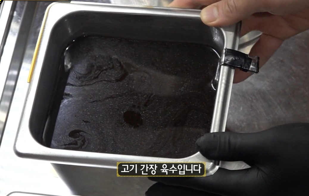 달인의 황금비율로 세 가지 육수를 희석해 주면 완성되는 육수는 웬만한 정성으로는 탄생할 수 없는 맛입니다. 육수 개발을 위해 하루 2시간만 자며 한 달간 엄청난 열정을 쏟았던 달인. 그 한달 후에 쓰러졌다네요.