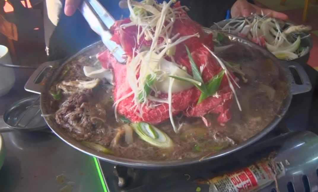 한우 우둔살과 목살 부위를 얇게 썰어서 한 그릇이 꽉 차고 넘칠 만큼 푸짐하게 담는데요.