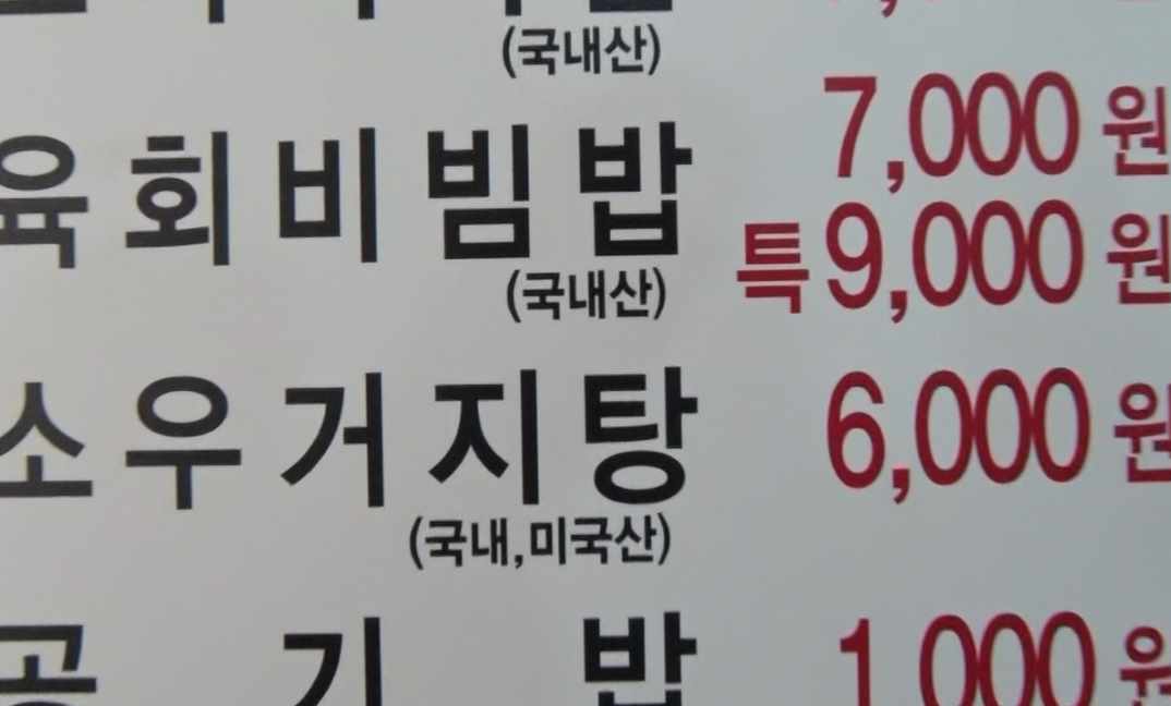 국내산 소머리국밥의 가격은 7000원.