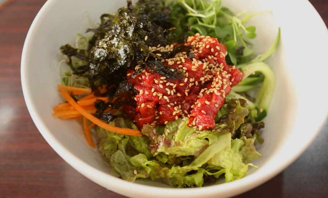 이곳에서는 간단한 식사 메뉴도 저렴하게 즐길 수 있다는데요. 품질 좋은 국내산 소고기를 양념장에 조물조물 무쳐서 갖은 채소 위에 살포시 올린 국내산 육회비빔밥이 한 그릇에 7000원.