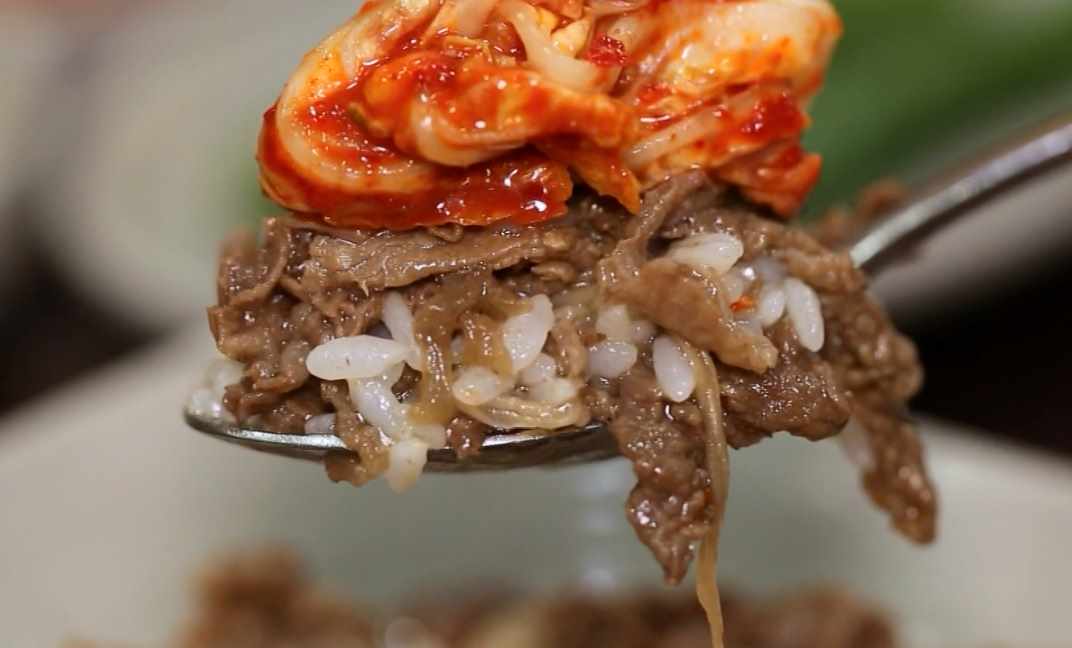 달짝지근한 불고기에 밥 한 공기 슥슥 비비고 여기에 잘 익은 김치까지 올려서 한입에 후루룩.