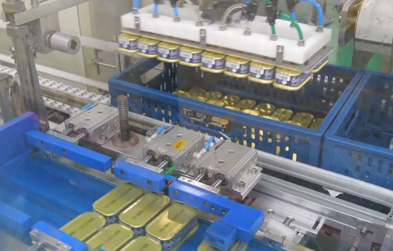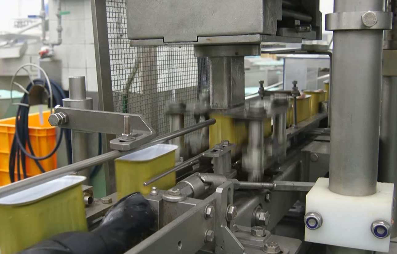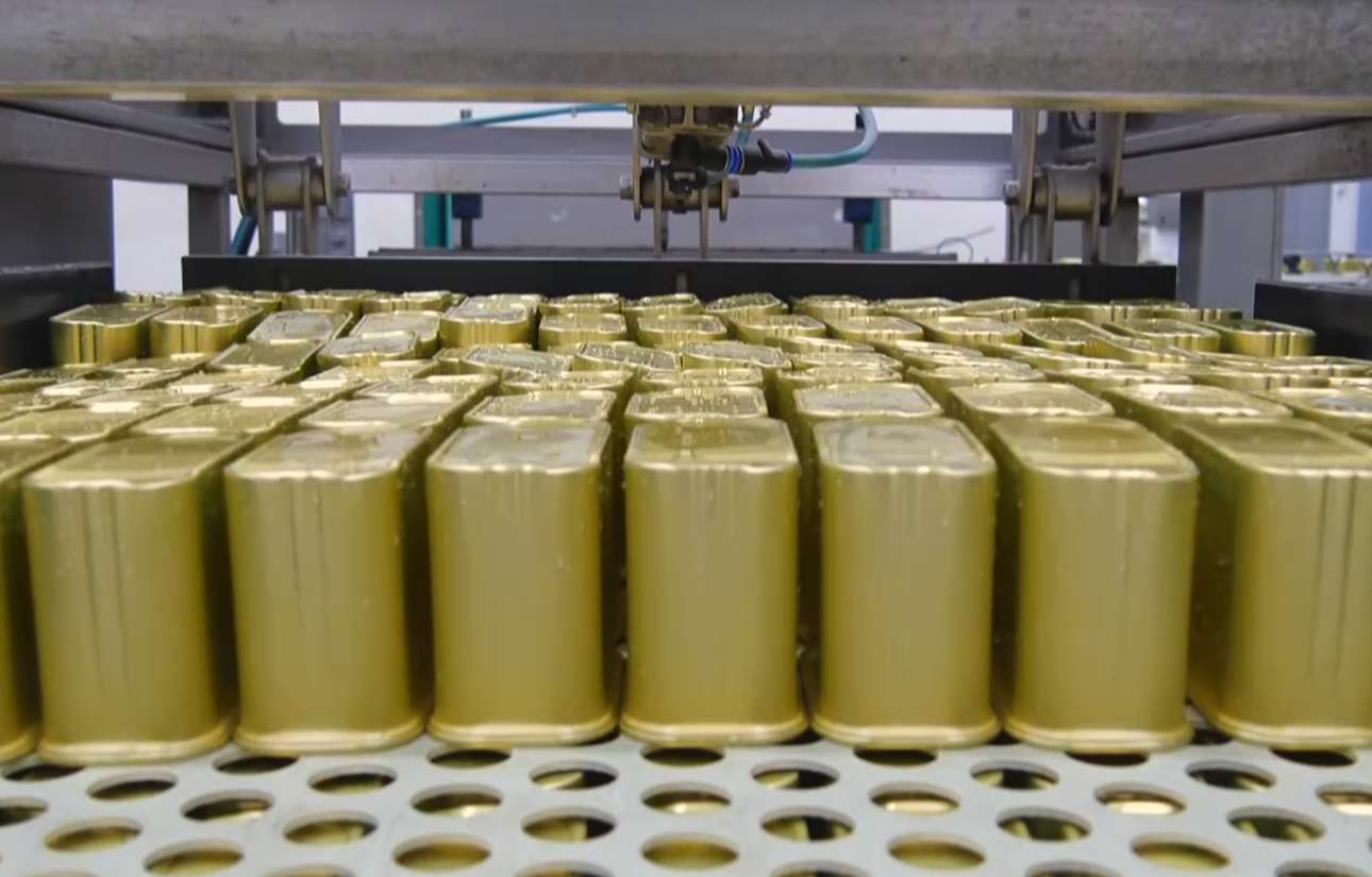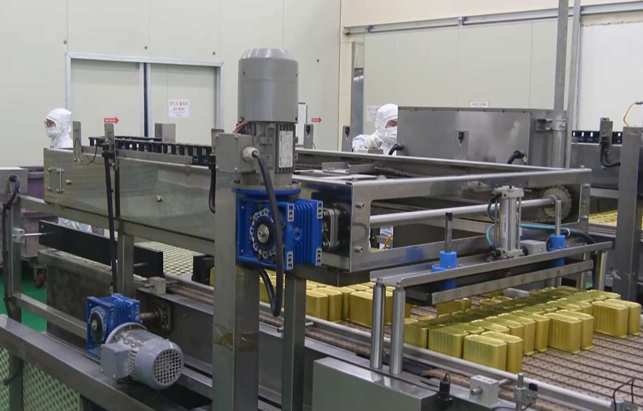 안전한 먹거리를 위해 점검하고 또 점검 하는 것은 필수. 믿고 먹을 수 있겠어. 깨끗하게 세척된 캔이 줄지어 들어오고 있습니다.