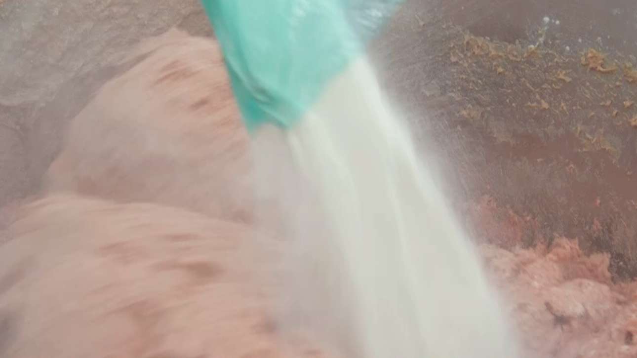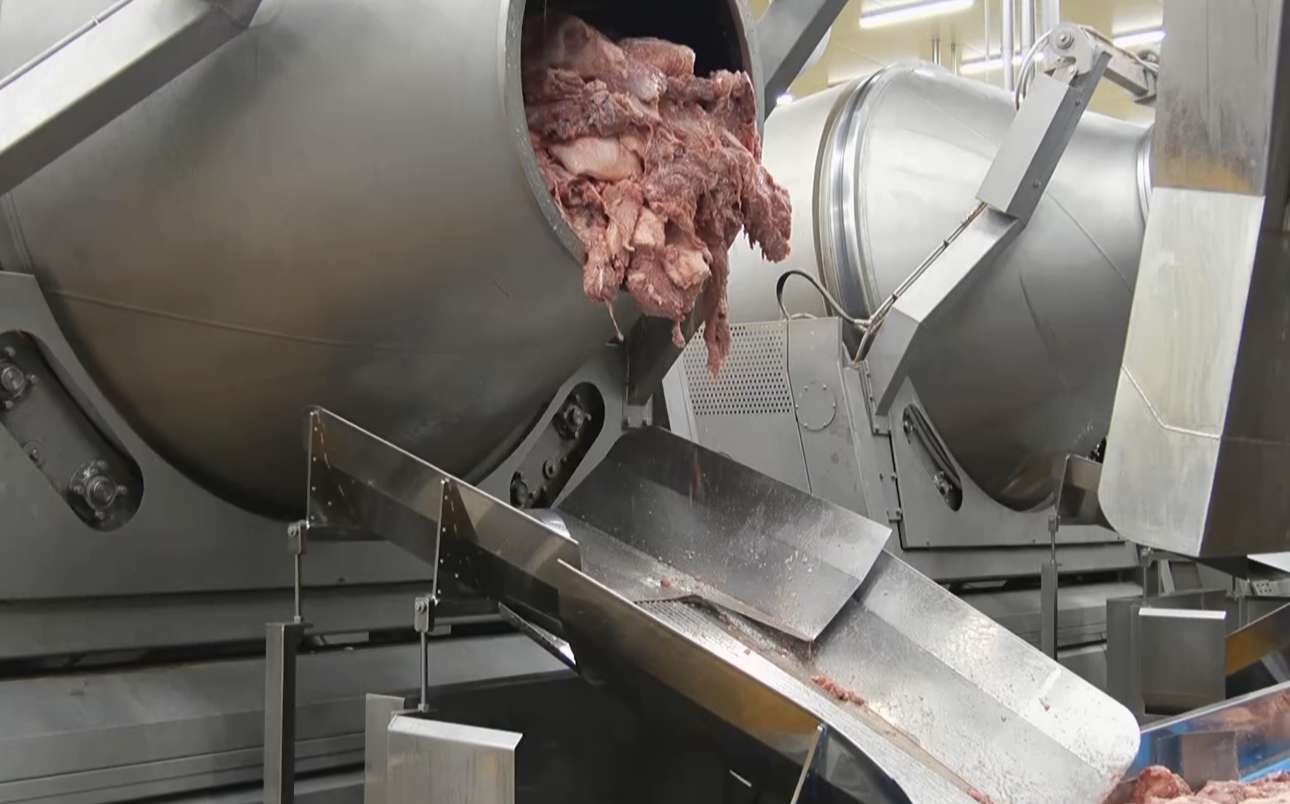 통조림햄의 핵심 공정. 감칠맛을 더해 줄 차례. 바로 염지 공정인데요. 고기의 풍미를 증가시키기 위해 소금을 비롯한 염지제를 투입시켜 잘 섞어주는 작업입니다.